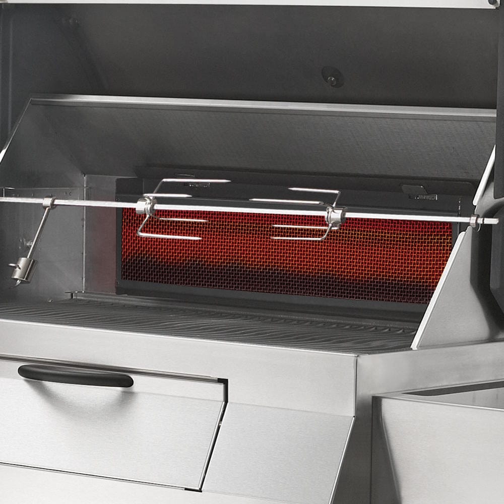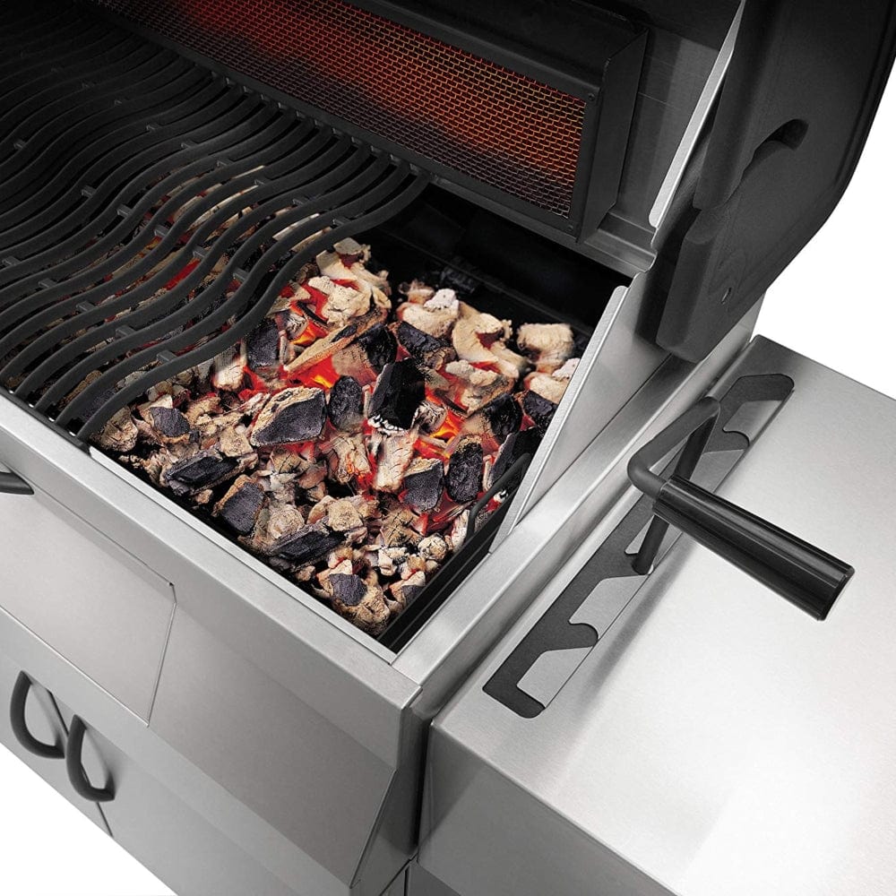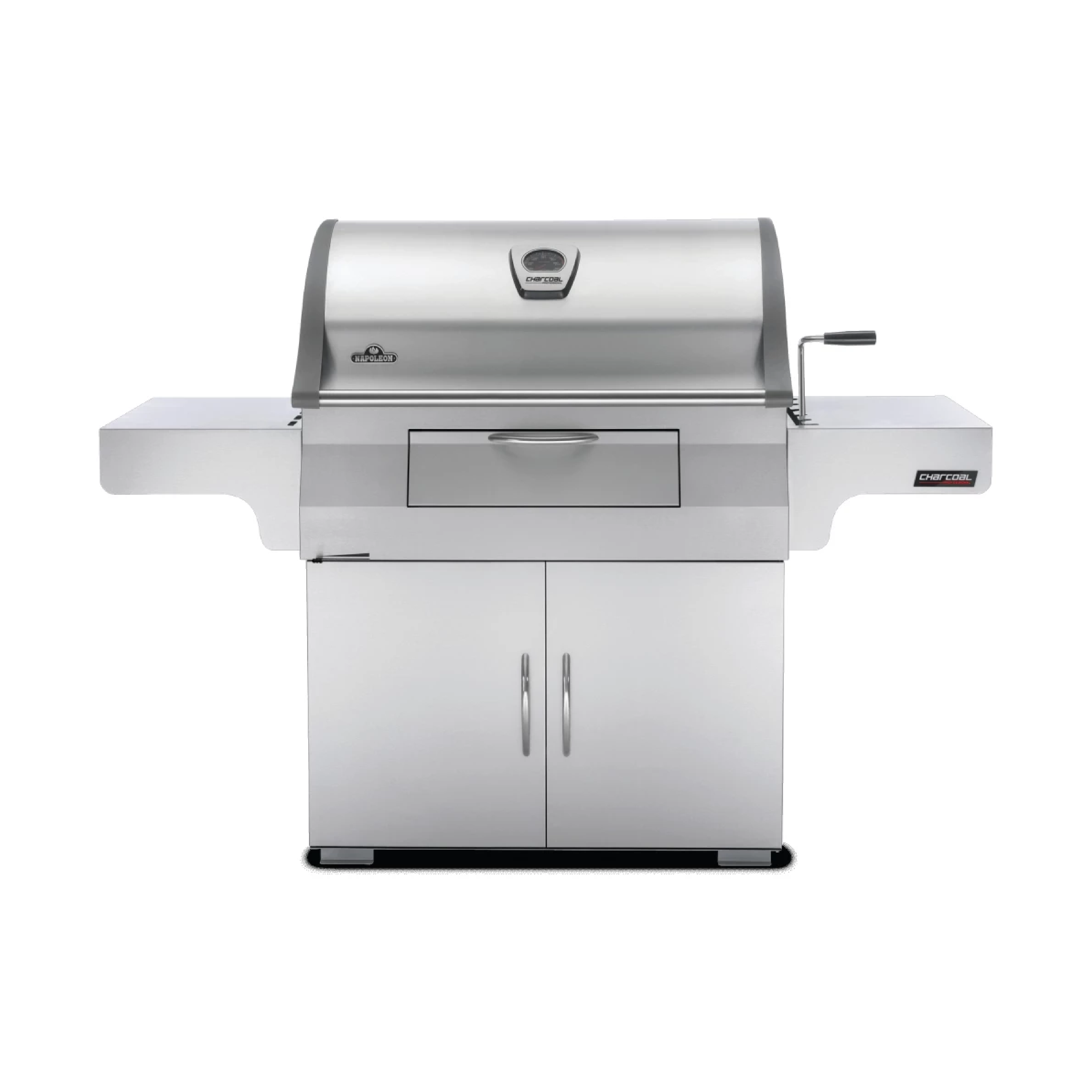 - The NAPOLEON Professional PRO605CSS charcoal grill has a vertical, infrared, stainless steel charcoal burner with a rotating spit kit.